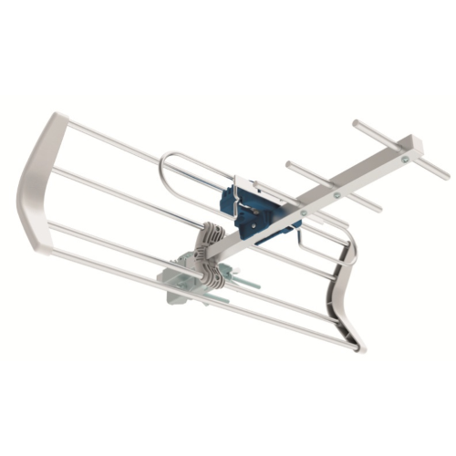 Antenna YAGI di banda UHF progettata migliorando l'aspetto meccanico della struttura permettendo di ottimizzare la ricezione dei segnali terrestri e filtrare perfettamente i disturbi LTE/5G. Caratterizzata da un'elevata robustezza grazie all'utilizzo di tondini in alluminio dal diametro di 8mm.