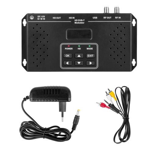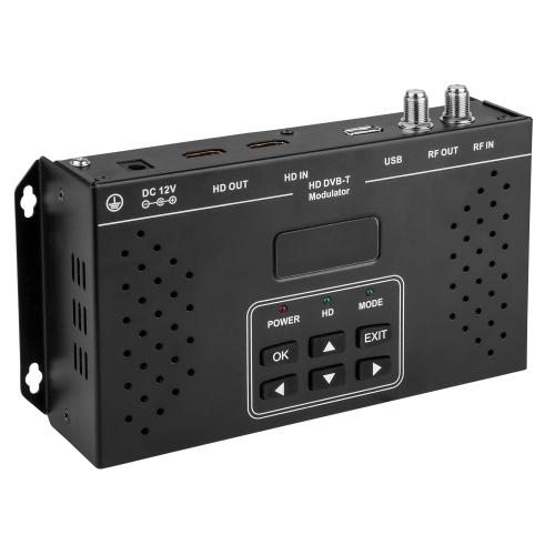 Il modulatore integra la codifica MPEG-4 AVC/H.264 e modula i segnali audio/video in DVB-T tramite l'uscita RF.