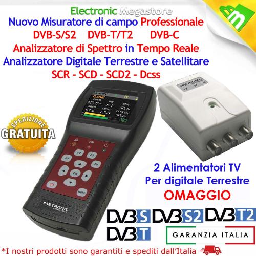 Misuratore di campo TV/SAT + 2 Alimentatori 2 uscite per digitale terrestre metronic 414041