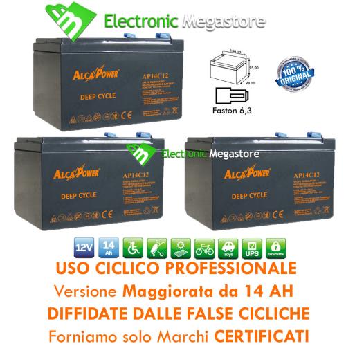BATTERIA CICLICA AL PIOMBO 12V 14A ERMETICA - KIT DA 3 PEZZI