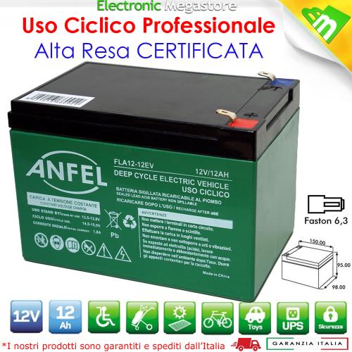 ANFEL FLA12-12EV Batteria Ermetica Ricaricabile al Piombo CICLICA 12V Volt 12Ah ALTA RESA 6-DZM-12 6DZM12