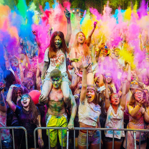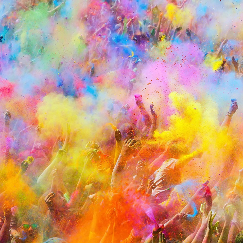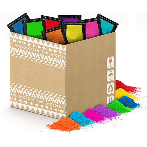 Consigliamo dalle 4 alle 5 bustine di polvere Holi gulal per persona per il tuo Holi Event per avere un ottimo effetto scenico.