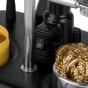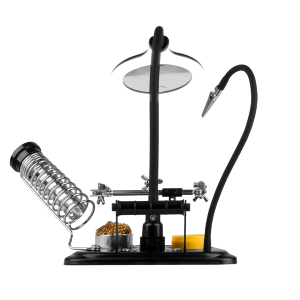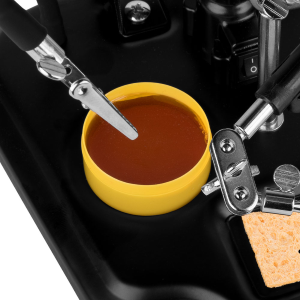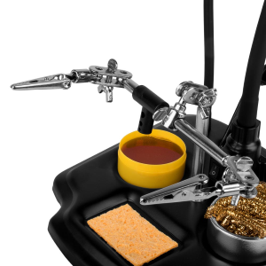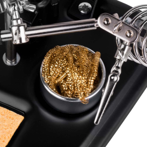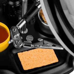-L’utensile viene fornito anche con supporto per saldatore, morsetti a coccodrillo, supporto per bobina di filo di saldatura, spugna, colofonia e sfera di pulizia per facilitare la saldatura.