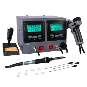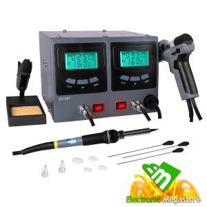 Stazione 2 in 1 SALDANTE E DISSALDANTE ZD-987 saldatura con STILO e dissaldatura con Pistola succhia aspira stagno a POMPA
