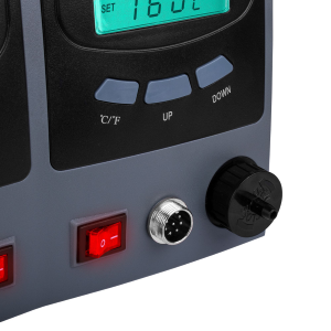 Lo stilo saldante e la pistola dissaldante vengono controllati automaticamente da due microprocessori. L'elettronica di controllo digitale e il sensore di alta qualità e il sistema di scambio termico garantiscono un controllo preciso della temperatura sulla punta di saldatura. Il massimo grado di precisione della temperatura e il comportamento termico dinamico ottimale in condizioni di carico sono ottenuti dalla registrazione rapida e accurata dei valori misurati in un circuito di controllo chiuso.