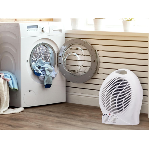 Termoventilatore, 2000W, 2 Potenze selezionabili, Termoventilatore compatto con Termostato regolabile, Modalità Eco e Autospegnimento, Silenzioso, 2 Manopole, Protezione Antigoccia, Termostato, Maniglia, Protezione Antigelo, Doppio Isolamento