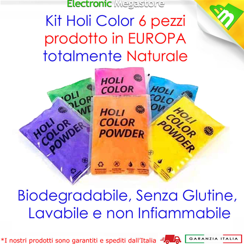 KIT HOLI COLOR POLVERE COLORATA 6 BUSTINE DA 100 GRAMMI ALTA QUALITÀ